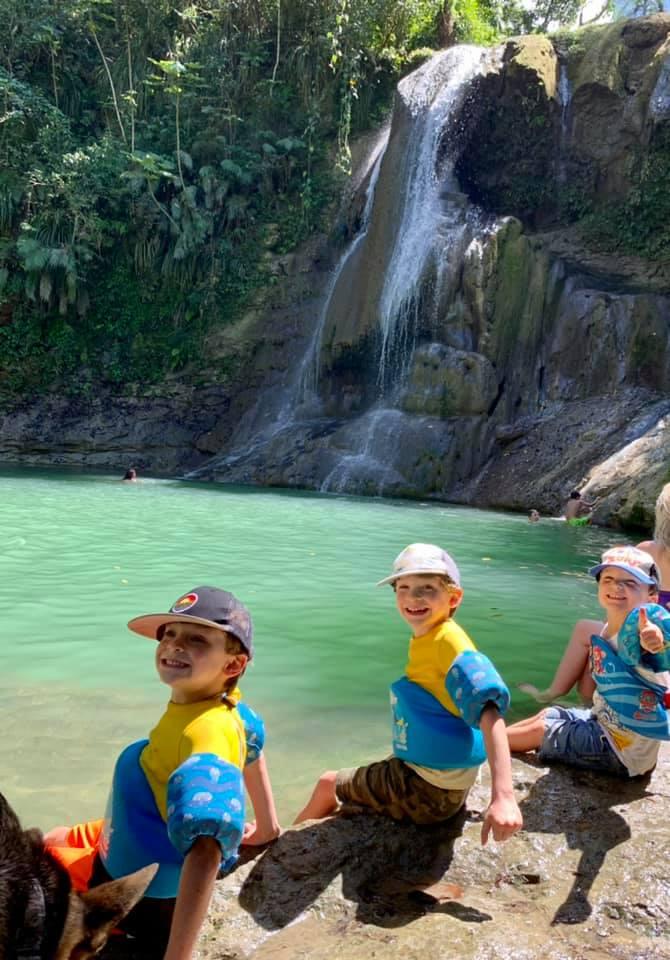 We drove away from the beach and into the mountains today. We found a waterfall in the middle of the jungle, and let me tell you this little lagoon was COLD!
