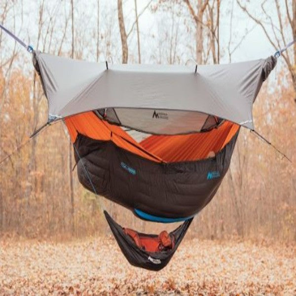 The Inferno hammock camping insulation system is our top-line highly efficient backpacking top quilt and under quilt warmth duo. Together these two pieces of gear give you the fully protective warmth needed to brave the wild in freezing temperatures. The unique designs lend themselves to ultralight weight design with increased thermal efficiency.