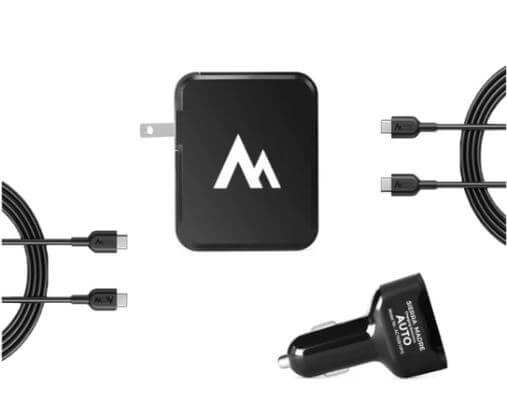The Auto Charger is a 45Watt car charger that charges 9x faster than a normal USB charger, it comes with a USBC PD cable. Auto is 2.5x faster than the Eco. The Auto Charger (45w) will charge the Power Pack UL in 1.2 hours The Auto Charger will charge the Power Pack XL in 2.4 hours